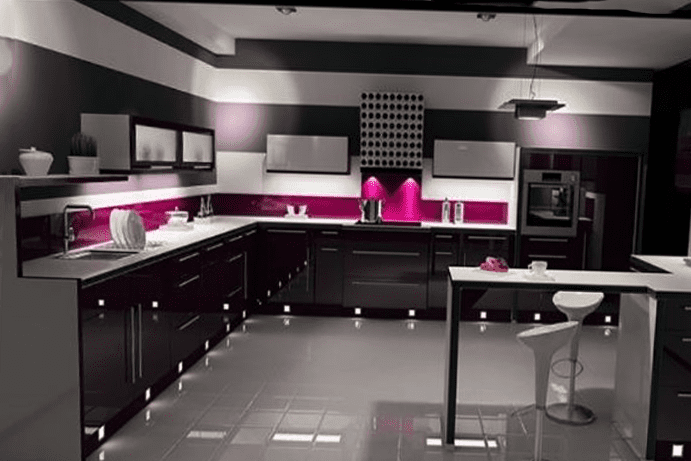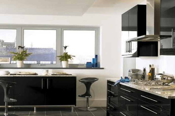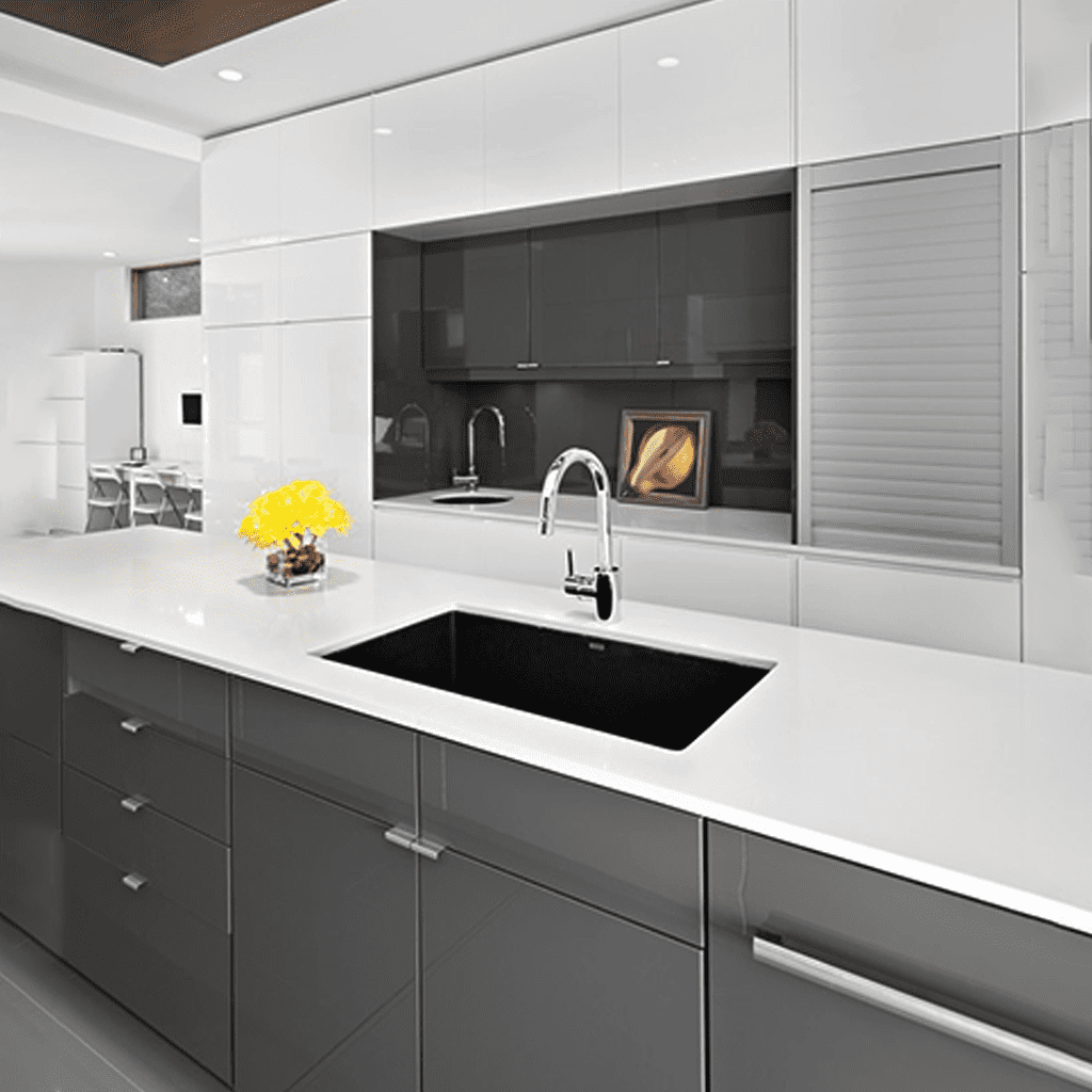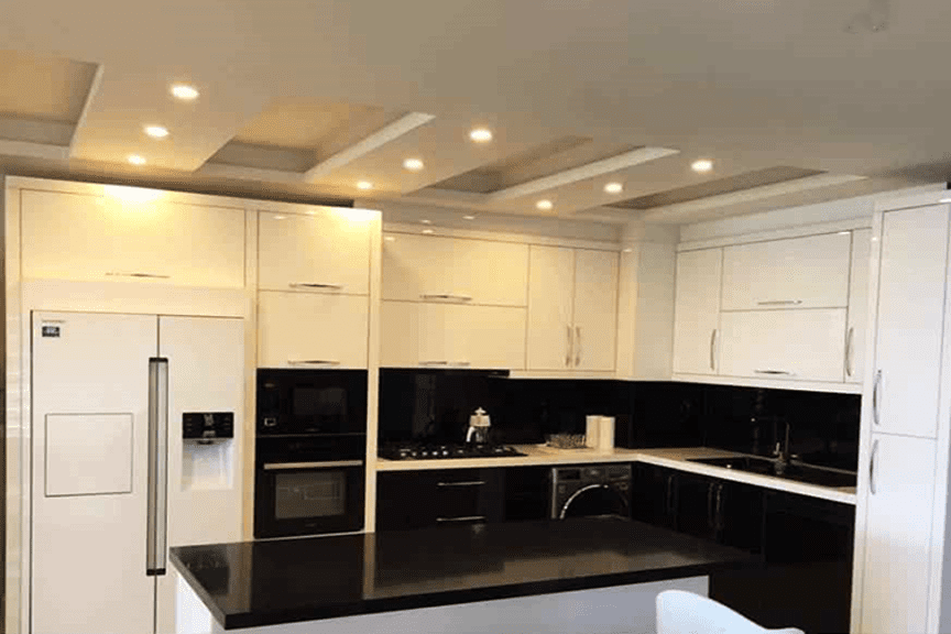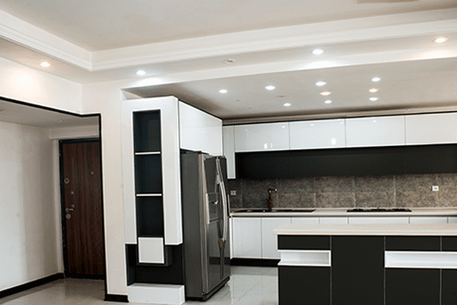 در تصویر نمونه کار از کابینت هایگلاس سفید مشکی را مشاهده میکنید. این رنگ قبلا کاربرد کمی داشت اما امروزه در منازل طرفداران خودش را پیدا کرده است. این رنگ سفید و مشکی رنگ سومی هم دارد که باعث شده فضا از یکنواختی خارج شود. در این ترکیب رنگ مانند کابینت سفید طوسی، میتوان از رنگ سوم هم استفاده کرد که باعث جلا و جذابیت خاصی میشود.