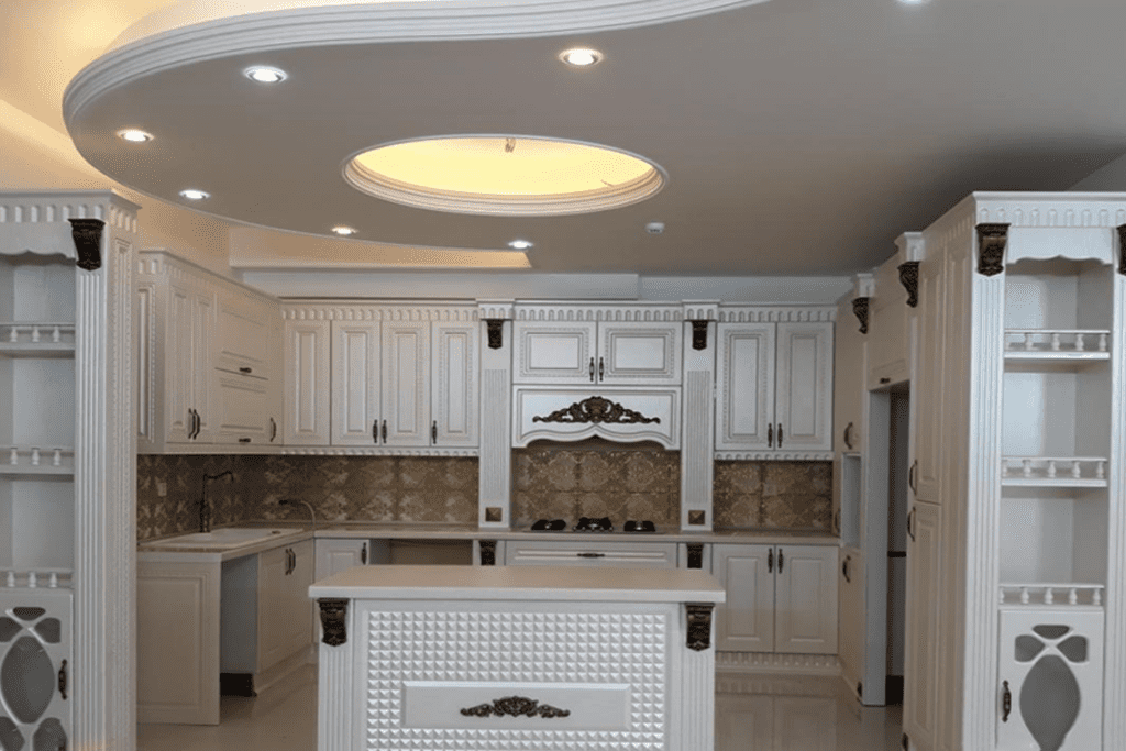 سبک کلاسیک:سبکی است که نقش برجسته یا فرورفته دارد و روی درها، روی نماهای کار و روی ستون ها نقش برجسته کار میشود. کابینت های کلاسیک را با طرح ممبران، چوب یا ام دی اف رنگ شده ساخته میشود.
